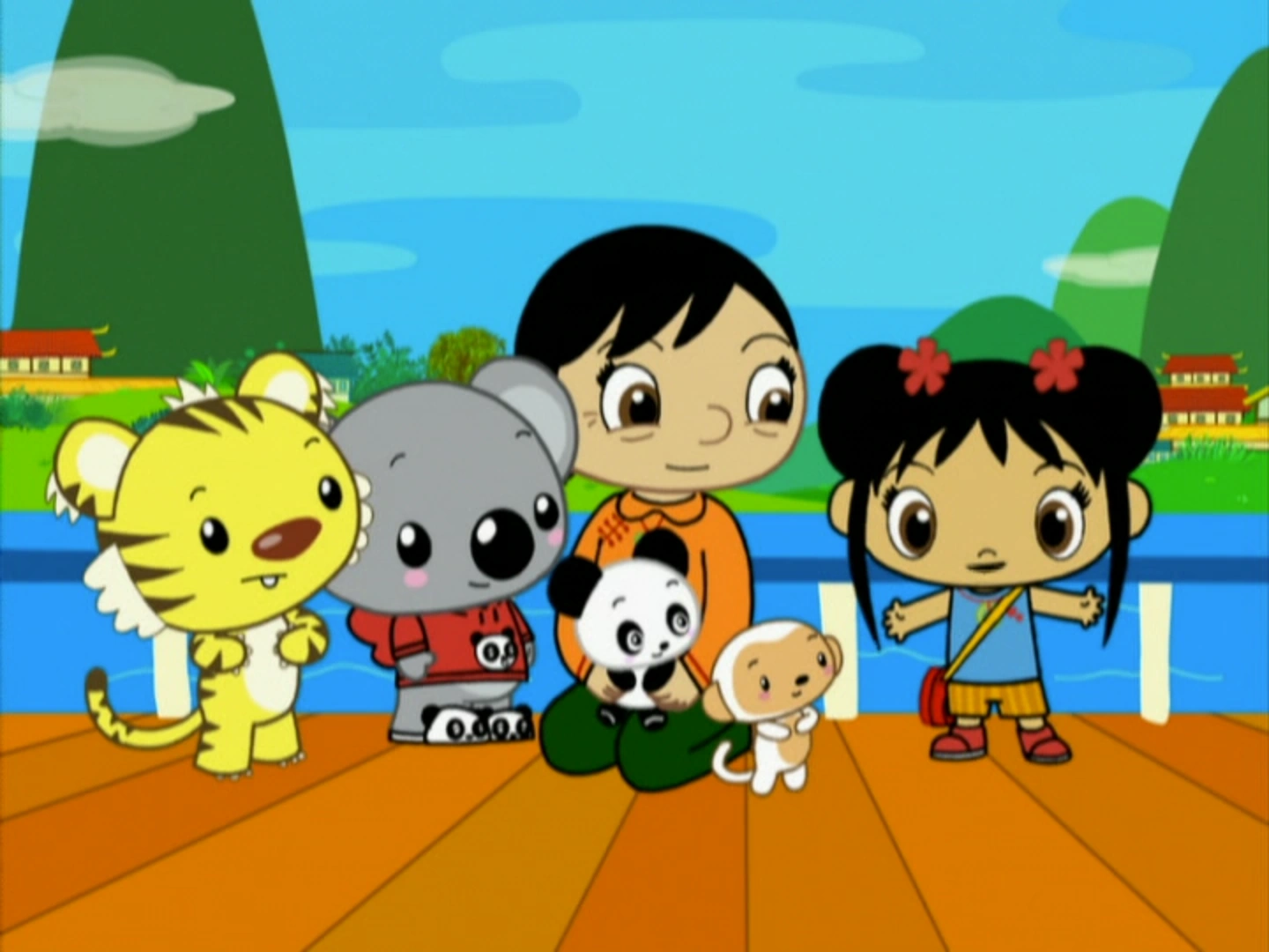 Inside the treehouse, where they see the baby panda's mother. The mother states that he doesn't have a name yet, where they plan to have a naming party for him. For the party, the group aims to find presents for the baby panda, where they start via heading to the city. Kai-Lan and her animal friends visit a blanket ship, where the baby panda eats watermelon, so they then get a watermelon blanket for him. The next thing that they need to get are some baby tiger shoes, where they must board a boat to get to a shoe shop and back. However, the baby panda suddenly becomes scared of the boat. Kai-Lan says that the panda is afraid to get on the boat because he's never been on a boat before.