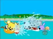 - Rintoo: I just want to play with everyone. Ooh, I know! We can spin like this! (Rintoo spins rapidly, making a bunch of splashes.)